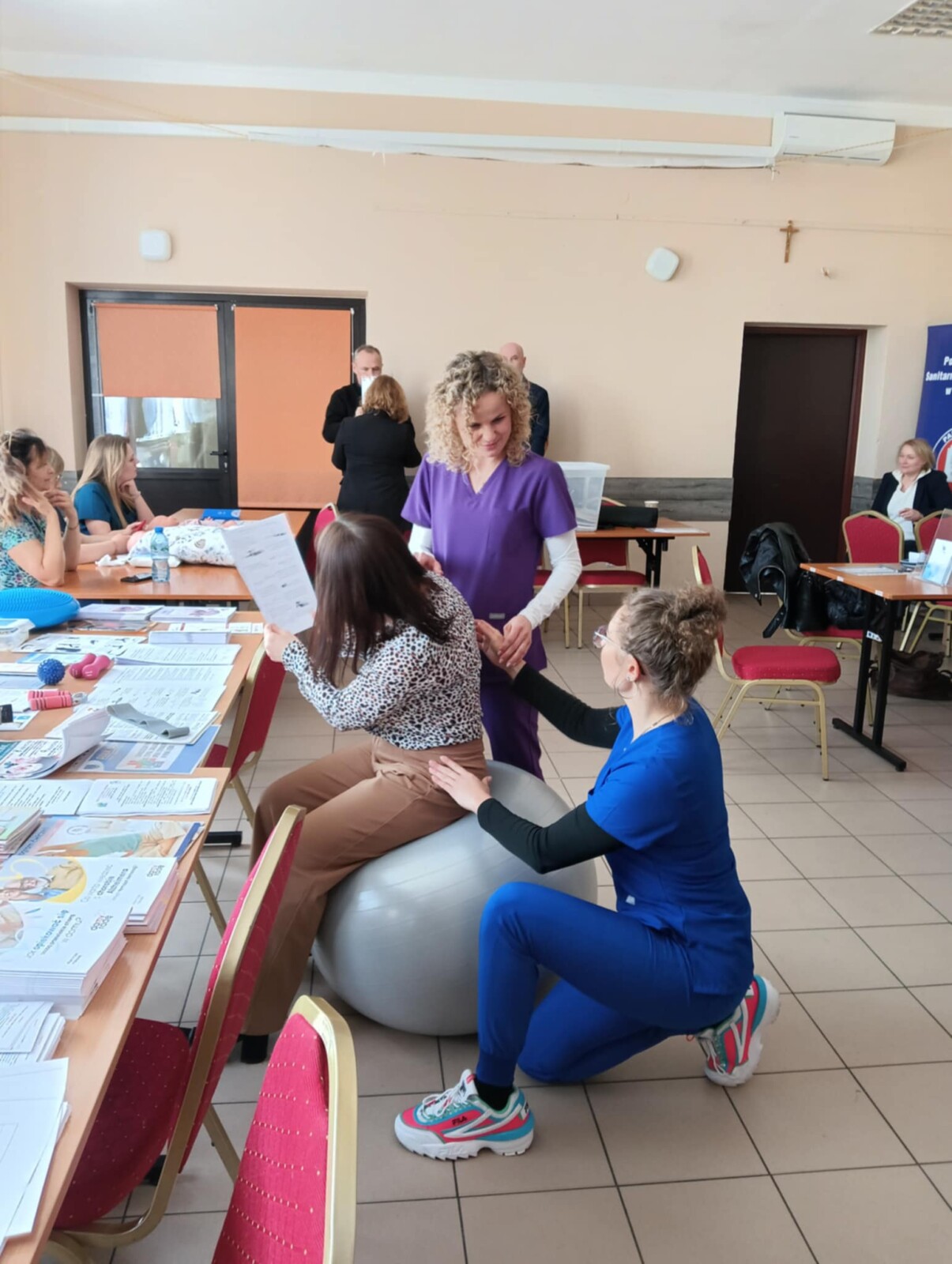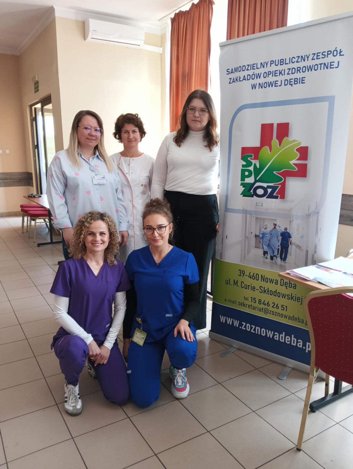 Położna Oddziału Ginekologiczno-Położniczego Pani Ewa Franuszkiewicz i Położna Środowiskowa Przychodni Podstawowej Opieki Zdrowotnej Pani Bernadeta Godek, zachęcały do korzystania z bezpłatnej Szkoły Rodzenia działającej przy Szpitalu Powiatowym w Nowej Dębie, także z usług Oddziału Ginekologiczno-Położniczego oraz do zapisów do nowo powstałej przy szpitalu przychodni POZ.