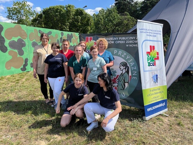 Szpital Powiatowy w Nowej Dębie był również obecny na tym wydarzeniu. W sobotnie popołudnie szpital zapraszał do swojej strefy i skorzystania z badania poziomu cukru we krwi, mierzenia ciśnienia, nauki poprawnego mycia rąk pod okiem Pielęgniarki Epidemiologicznej Szpitala. Ratownik Medyczny oraz Oddział Anestezjologii i Intensywnej Terapii przeprowadzali szkolenie reanimacji. Dzieci mogły skorzystać z bogatej oferty Działu Fizjoterapii, który proponował rozrywki na świeżym powietrzu od skakania przez przeszkody po granie w kręgle, a w chwili wytchnienia można było skorzystać z kolorowania obrazków.