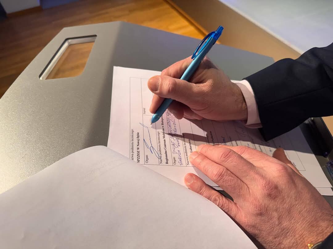 Starosta Tarnobrzeski Paweł Bartoszek podczas składania podpisu