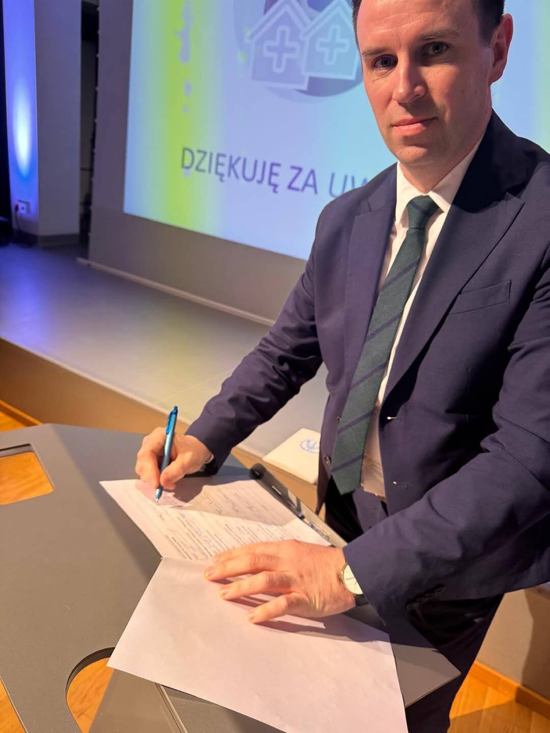 Dyrektor SPZZOZ w Nowej Dębie Jakub Dzik w akcie podpisywania akcesu do inicjatywy