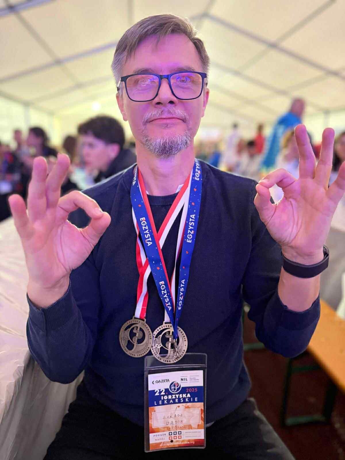 Z kolei Pan dr Tomasz Stąpor zdobył dwa srebrne medale w dyscyplinie tenis stołowy w deblu, w grze mieszanej z córką Karoliną, a także czwarte miejsce w grze pojedynczej.