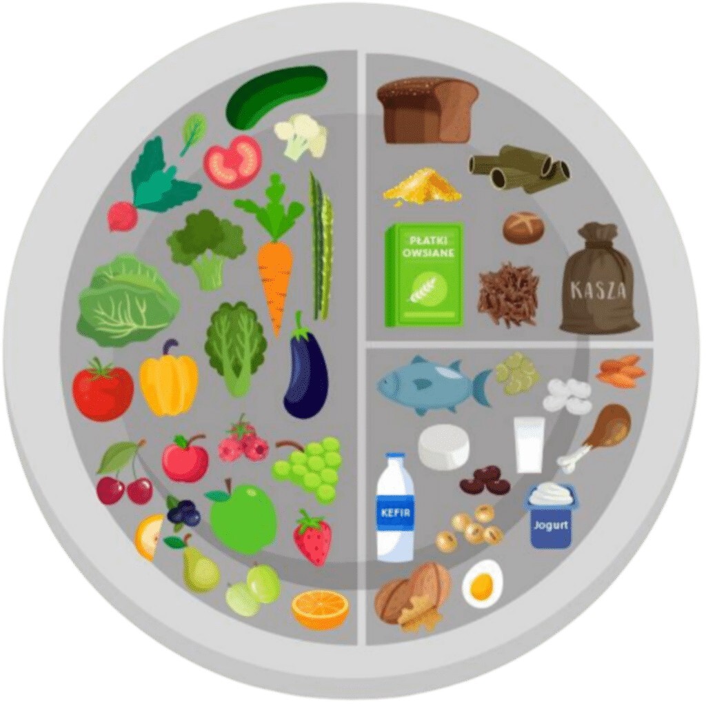 Narodowy Instytut Zdrowia Publicznego, przedstawia zalecenia żywieniowe w formie talerza, który składa się z produktów jakie powinny znaleźć się w codziennej diecie.